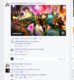 Hoje mais cedo perguntei pra meus fellow camaradas do Facebook que pose das que bolei ali seria mais legal de ver ela, também comentei que estava aberto à sugestões